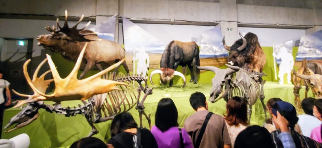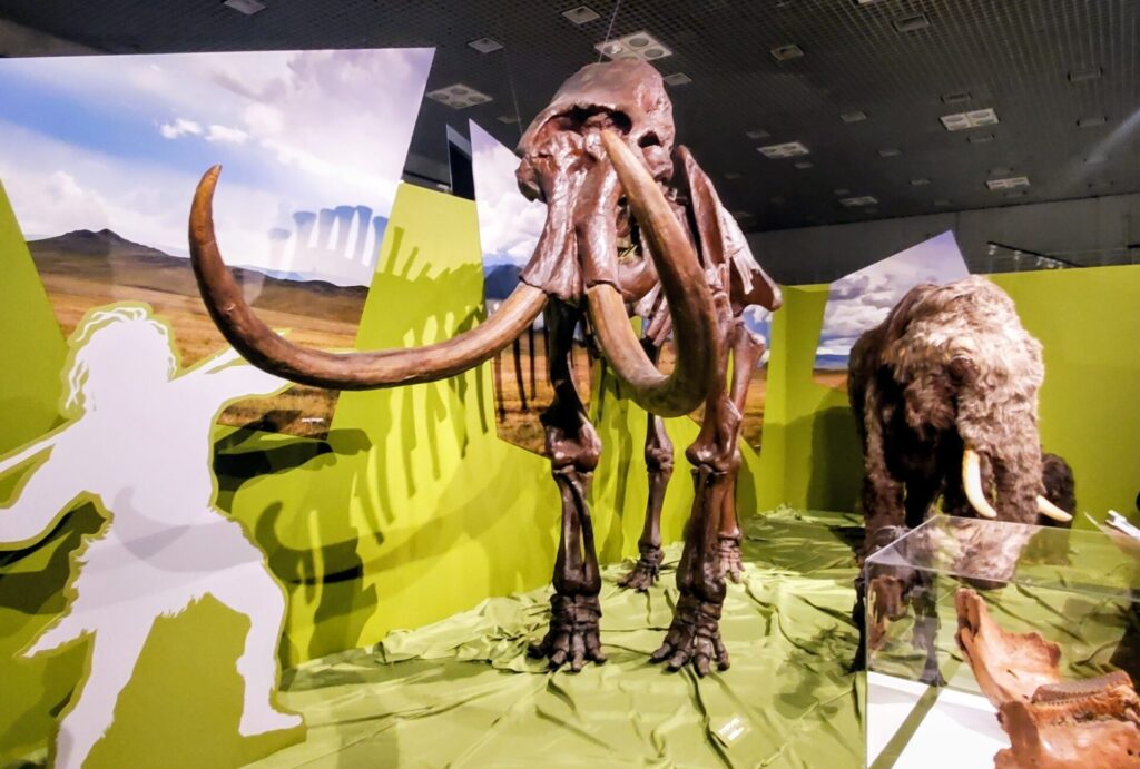 マンモスを始めとする動物たちの復元体や化石や骨が展示されており流石の迫力でした!