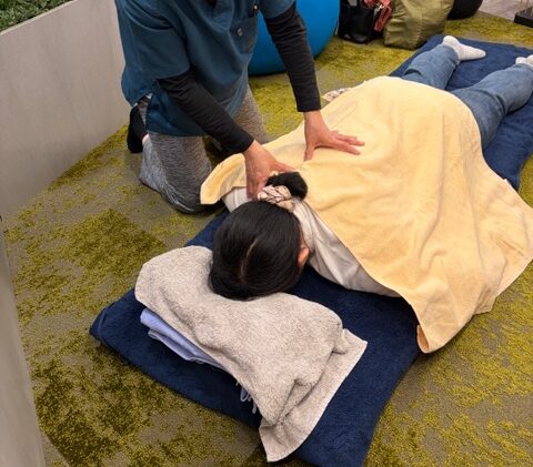今回もヨギボースペースで、ゆったりとした雰囲気の中施術を実施。全身ケアに加え、新たにハンドマッサージも取り入れ、より充実した内容となりました。